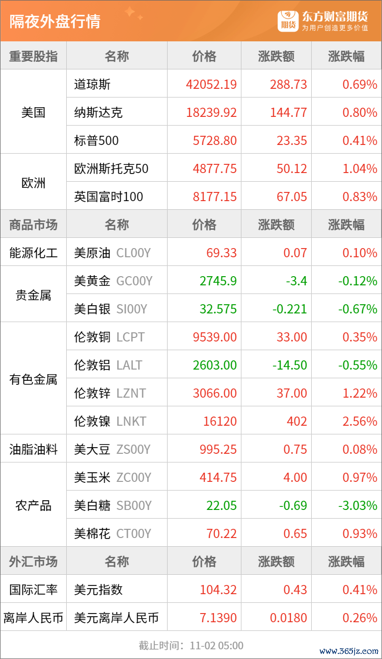 配资正规平台 东方财富期货早餐 11月4日 周一